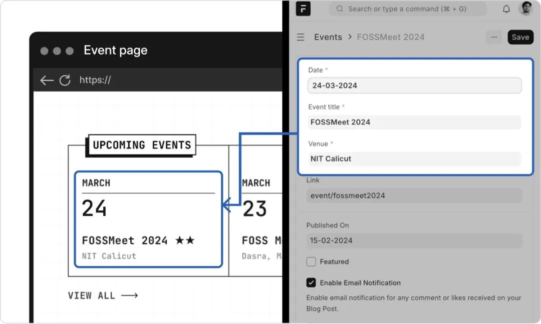 不只是静态页面,动态填充数据更强大的是,所构建出来的页面内容可以是动态的,支持连接 Frappe Framework 数据库实现内容根据需求动态填充。