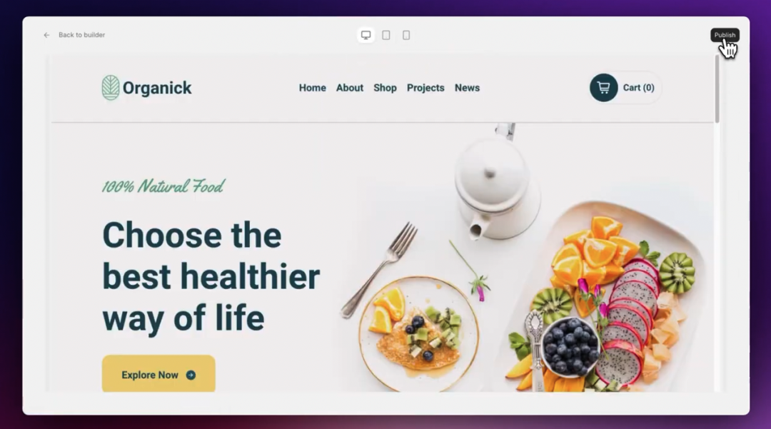 一键发布,轻松上线当我们搭建完网站后,只需要点一下右上角「Publish」发布按钮,就能将网站一键上线。