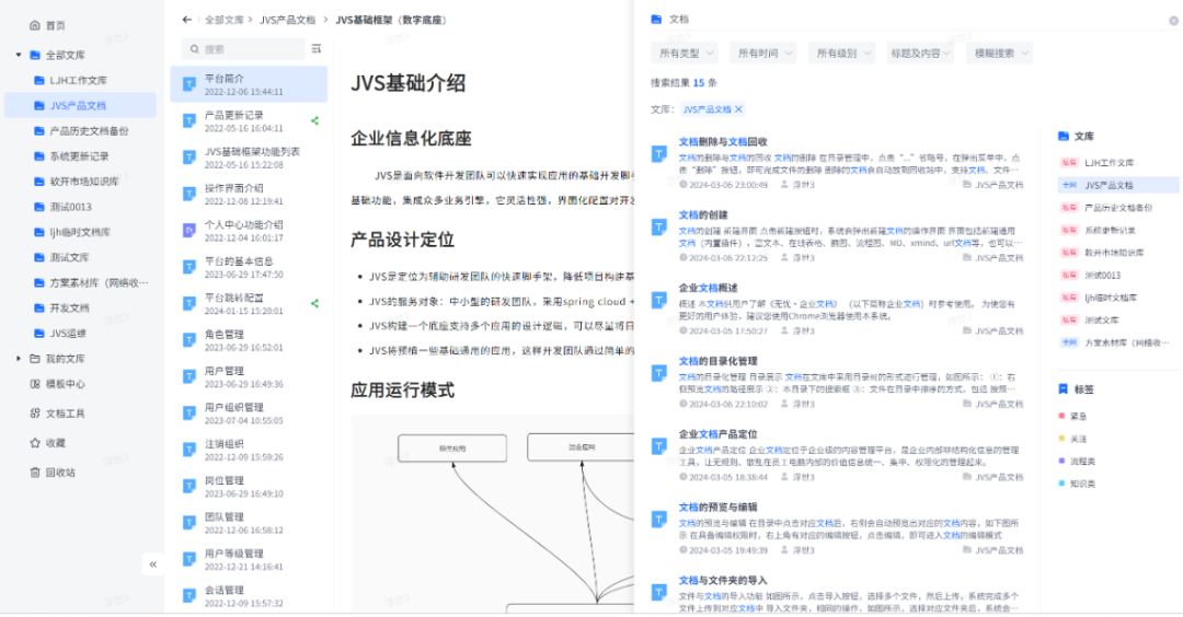 - 全站智能搜索引擎,支持文档级、内容级检索