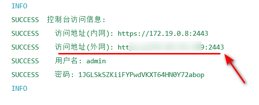 >>安装完成后,控制台会显示访问地址、用户名和密码。